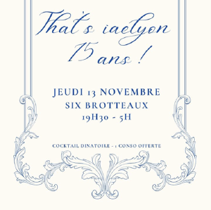 L¡¯association That¡¯s iaelyon souffle ses bougies et t¡¯invite ¨¤ une soir¨¦e d¡¯exception pour c¨¦l¨¦brer ses 15 ans ! Au programme : cocktail d?natoire d¨¨s 20h30, petites douceurs, tenues ¨¦l¨¦gantes et dancefloor jusqu¡¯au bout de la nuit. Tenue de soir¨¦e demand¨¦e.
