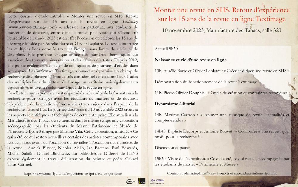 ? l’occasion des 15 ans de la Revue Textimage, Gérard Titus-Carmel, peintre, dessinateur, graveur mais aussi poète, a confié ses livres d’artistes à la Bibliothèque Diderot de Lyon pour une exposition unique.